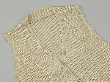 Kamizelka damska Sansis, rozmiar S - Kolor: kremowy/ecru - Fason: swobodny, bez zapięcia, z szerokim kołnierzem/szalowym wykończeniem - Dzianina: grubiej pleciona, ażurowa - Materiał: 100% akryl (...