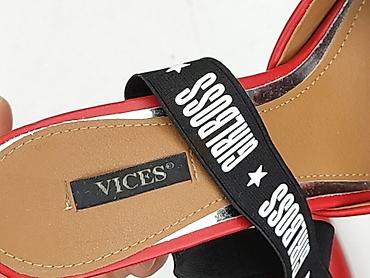 Czerwone czółenka VICES na słupku z elastycznym paskiem „GIRLBOSS”.