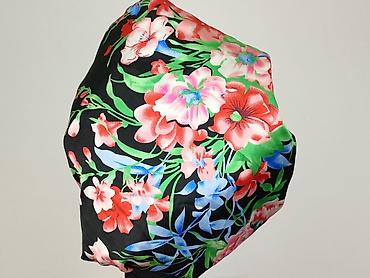 - Kolor: czarne tło z intensywnym, wielobarwnym kwiatowym nadrukiem (róże, liście, błękity, zielenie, czerwienie)