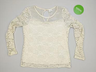 Bluzka damska VILA Clothes, rozmiar M. - Kolor: kremowa/śmietankowa - Fason: prosta, z okrągłym dekoltem i długim rękawem - Dół wykończony szeroką, efektowną koronką o kwiatowym wzorze z frędzelka...