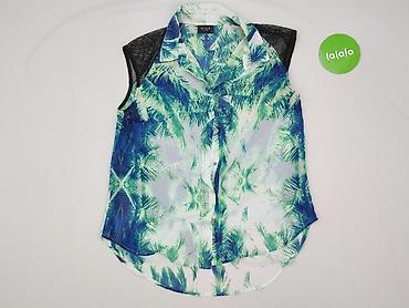 H&M – damska koszula bez rękawów w tropikalny wzór - Marka: H&M - Rozmiar z metki: EU 38 (US 8, CA 8, CN 165/88A) - Krój: bez rękawów, lekko wydłużony tył, kołnierzyk - Zapięcie: na guziki z przod...