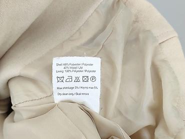 Damski płaszcz wełniany, beżowy, rozmiar M. - Klasyczny kołnierz, zapięcie na guziki z przodu - Dwie duże kieszenie naszywane + pionowe kieszenie wpuszczane po bokach - Dekoracyjna patka z guzikam...