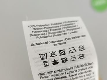 - Przewidziana pielęgnacja: pranie w 30°C, nie wybielać, nie suszyć w suszarce, prasować w niskiej temp., czyścić chemicznie – zgodnie z symbolami na metce