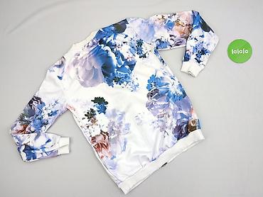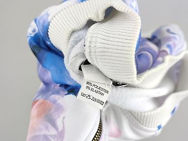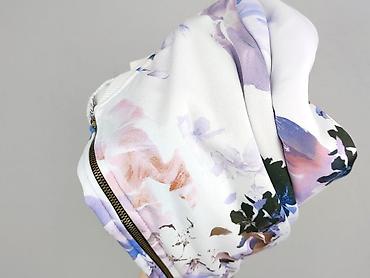 - Wzór: duże, malarskie kwiaty w odcieniach niebieskiego, fioletu, pudrowego różu i bieli