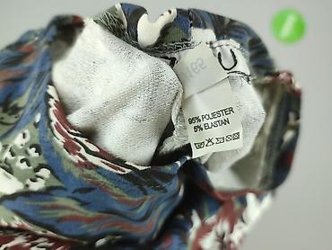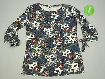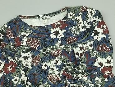 Bluzka damska DR2, rozmiar L - Fason: luźna tunika z zaokrąglonym dołem - Dekolt: w kształcie V z ozdobnym wycięciem na karku - Rękaw: 3/4 z lekkim marszczeniem przy mankiecie - Wzór: intensywny, ...Stan: