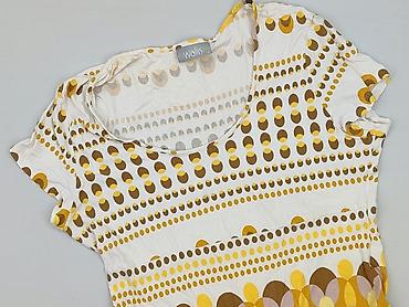 - Wzór: geometryczne kropki i łuki w odcieniach żółtego, brązu, beżu i delikatnego fioletu na białym tle