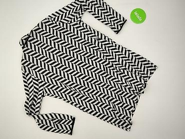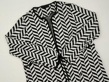 Damski kardigan Clippy Holly - Fason: zapinany/wiązan y z przodu na szeroki czarny pasek – tworzy elegancką linię talii; dłuższy przód z zaokrąglonymi brzegami - Wzór: czarno‑biały, gęsty, geometr...
