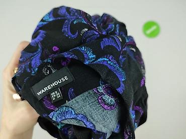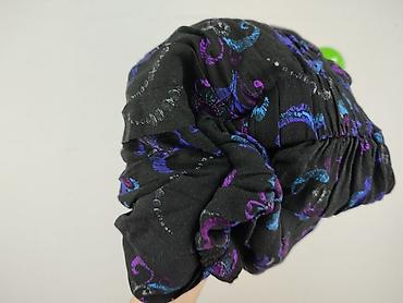 - Wzór: czarny materiał w efektowny, roślinny ornament w odcieniach fioletu i niebieskiego, z subtelnym połyskiem nadruku