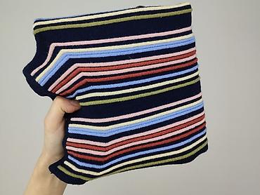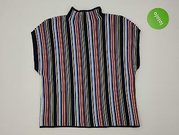 Damska bluzka w paski, rozmiar M - Krój: luźny, oversize’owy, z krótkim kimono-rękawem - Dekolt: w serek z niewielkim rozcięciem - Wzór: pionowe pasy w odcieniach granatu, musztardowej żółci, biel...Rozmiar: