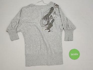 Szary bolerko/kardigan damski Lili sa me dit - Krój: krótkie bolerko, luźne rękawy typu nietoperz, długość do talii - Ozdoby: srebrne cekiny wszyte wzdłuż przodów oraz przy dekolcie i dolnej krawęd...