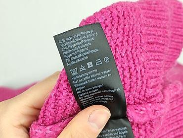 Sweter damski, różowy/fuksja, dzianina Made in Italy. - Fason: lekko dopasowany, wydłużony dół w kształcie łagodnego „V”, rękawy długie raglanowe - Dekolt: łagodny, zaokrąglony - Detale: ażurowe, ...Rozmiar: