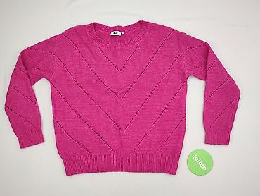 Sweter damski H&M, różowy pudrowy - Model: klasyczny sweter z okrągłym ściągaczowym dekoltem - Kolor: jasny róż (pudrowy) - Dzianina o wyraźnym splocie; elastyczne ściągacze przy mankietach i u do...