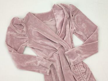 Lekka sukienka mini z długim rękawem w odcieniu bladego różu. Charakteryzuje się kopertowym dekoltem i plisowaną spódnicą, która dodaje lekkości. Rękawy zakończone są elastycznymi mankietami. W tal...