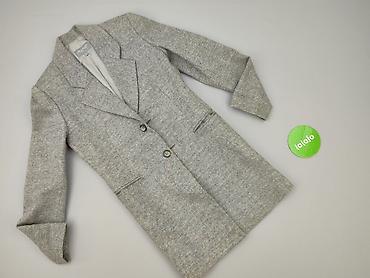 Szary damski płaszcz wełniany, rozmiar 38 (polska rozmiarówka). - Fason: klasyczny, lekko taliowany, długość za biodra - Zapięcie: na guziki (trzy z przodu) - Kołnierz: wykładany - Kieszenie: dwie...