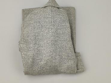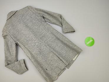 Damski żakiet/szlafrokowy płaszcz w odcieniu melanżowej szarości. - Krój: lekko taliowany, długość do połowy uda - Zapięcie: 3 guziki z przodu - Pasek w talii do wiązania (szlufki) - Klapy z kołni...