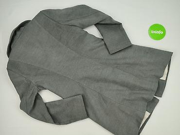Damski żakiet/szlafrokowy płaszcz w odcieniu melanżowej szarości. - Krój: lekko taliowany, długość do połowy uda - Zapięcie: 3 guziki z przodu - Pasek w talii do wiązania (szlufki) - Klapy z kołni...