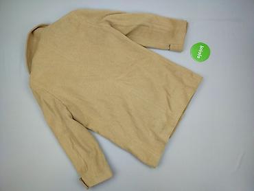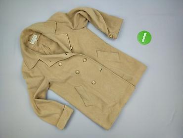 Beżowy trencz damski, rozmiar S - Klasyczny, dwurzędowy fason z kołnierzem - Regulowane patki przy mankietach - Kieszenie boczne - Pasek/szlufki w talii (widoczne szlufki) - Długość za biodra – zg...