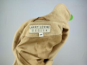 Płaszcz damski Larry Levine Design, rozmiar 4P (petite). Kolor: karmelowy/beżowy. Klasyczny fason dwurzędowy z szerokimi klapami, guziki w kolorze dopasowanym do tkaniny. Dwie skośne kieszenie z przodu, rękawy z mankietem.
