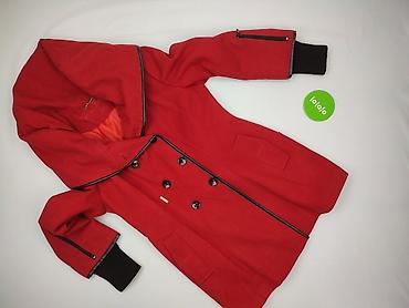 Płaszcz damski Bibise, rozmiar 38, czerwony. - Krój: dwurzędowy z wysoką stójką; dekoracyjne patki z guzikami na rękawach i z tyłu. - Zapięcie: podwójny rząd dużych guzików. - Kieszenie: dwie wsuw...Stan: