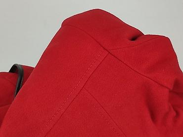 Płaszcz damski Bibise, rozmiar 38, czerwony. - Krój: dwurzędowy z wysoką stójką; dekoracyjne patki z guzikami na rękawach i z tyłu. - Zapięcie: podwójny rząd dużych guzików. - Kieszenie: dwie wsuw...