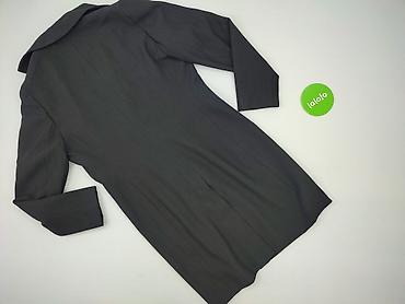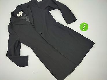 Damski płaszcz w stylu marynarki, czarny w delikatny prążek (pinstripe). - Krój: przedłużany żakiet/płaszcz jednorzędowy - Zapięcie: 3 guziki z przodu; mankiety z trzema guzikami - Kołnierz: klasy...
