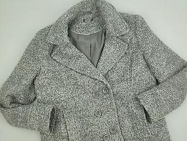 Damski płaszcz M&S Classic - Kolor: jasnoszary melanż - Rozmiar z metki: EU 42 (UK 14, CN 165/96A) - Krój: prosty, lekko taliowany, długość do kolan - Zapięcie: na guziki, listwa kryjąca - Kołnier...