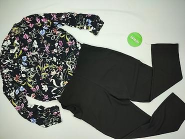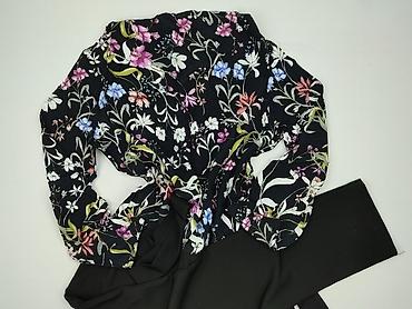 - Jednoczęściowy kombinezon: góra w kwiatowy wzór na czarnym tle, dół gładki, czarny.