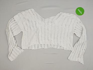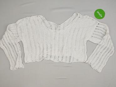 - Krótki sweter z dekoltem w kształcie litery V z przodu i z tyłu, długie rękawy, wykończenia typu raw (falująca, nieregularna krawędź).
