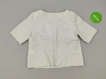 - Krótki top z półokrągłym dekoltem i rękawem do łokcia; ozdobny, satynowy pasek na przodzie; dyskretne zaszewki modelujące