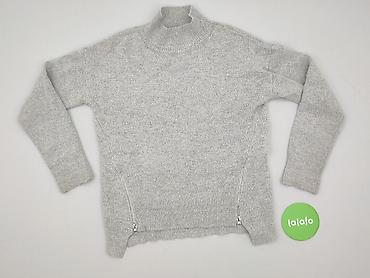Sweter damski H&M, szary melanż - Fason: klasyczny pulower z okrągłym dekoltem, długi rękaw - Dzianina miękka, przyjemna w dotyku; dół oraz mankiety zakończone ściągaczami - Skład (z metki): 62% a...