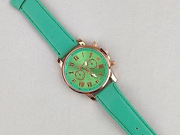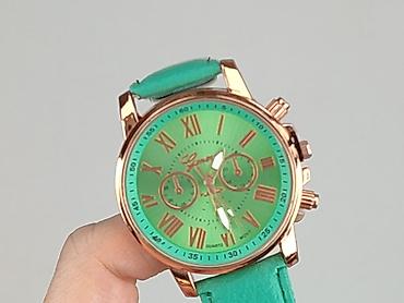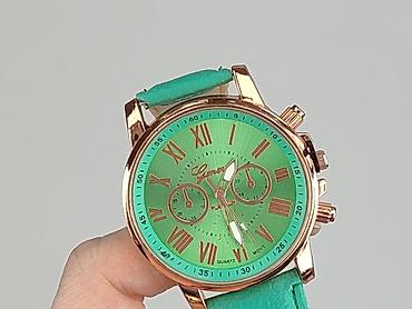 Zegarek damski Geneva, kwarcowy - Kolor: miętowy/turkusowy (tarcza i pasek), koperta w kolorze różowego złota - Mechanizm: quartz - Tarcza: rzymskie indeksy, dekoracyjne sub-tarcze - Średnica kope...