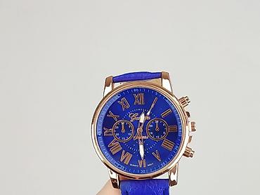 Damski zegarek analogowy z niebieską tarczą i paskiem