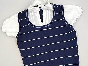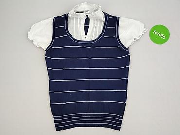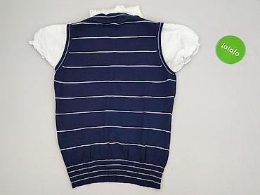 Subtelny, marynistyczny charakter pasków i elegancki kołnierzyk sprawiają, że bluzka świetnie łączy formalny wygląd koszuli z wygodą swetra. Dla kobiet. Używana.