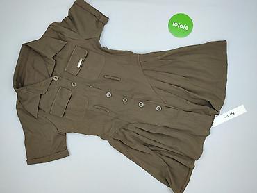 Damska tunika/koszulowa sukienka polo, kolor khaki/oliwkowy. - Krój: luźna tunika do połowy uda - Zapięcie: krótka listwa guzikowa (3 guziki) - Kołnierzyk: klasyczny koszulowy - Rękawy: krótkie, z...
