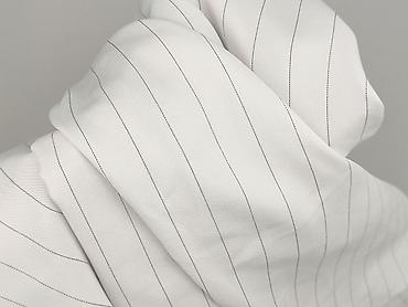 - Kolor i wzór: śnieżnobiały z cienkimi, pionowymi prążkami w szarości (optycznie wysmuklają).