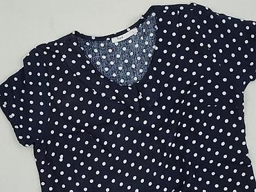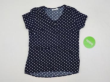 Bluzka damska MOUS, rozmiar S/M - Wzór: duże i małe grochy na granatowym tle - Fason: luźny, z dekoltem w serek; rękaw 3/4 - Materiał: 50% wiskoza, 46% poliester, 4% elastan – tkanina miękka, lekko...