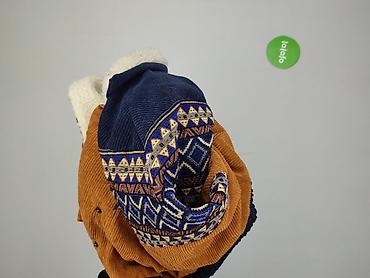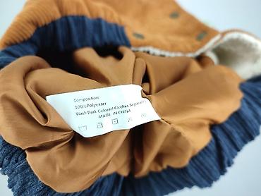 - Model z grubego, prążkowanego sztruksu w kolorze rudo‑brązowym z granatowymi wstawkami