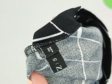 Bluzka damska Zara Trafaluc (TRF) - Krój: krótki top, prosta linia, okrągły dekolt, krótkie rękawy - Wzór/kolor: melanż biało‑czarny z drobną, pionową fakturą - Materiał: grubsza, elastyczna dzian...