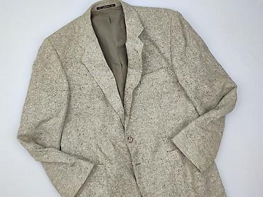 Damska marynarka w kolorze jasnego beżu/len. - Krój: klasyczny, lekko pudełkowy, z szerokimi klapami. - Zapięcie: 4 duże guziki z przodu; mankiety z trzema guzikami. - Kieszenie: dwie naszywa...
