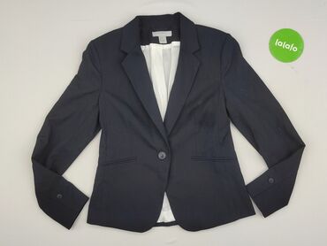 Marynarka damska H&M - Kolor: granatowy - Fason: klasyczna, bez zapięcia (otwarta), dopasowana, z klapami bez kołnierza - Rozmiar z metki: EUR 36 (US 6, CA 6, CN 165/88A, MX 6) - Materiał: tkanina...