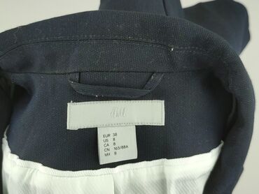 Damska marynarka H&M, granatowa - Model: jednorzędowa, zapinana na jeden guzik - Kolor: granat - Rozmiar z metki: EU 38 (US/CA 8, CN 165/88A, MX 8) - Fason: lekko taliowany, z klapami, długie ręka...