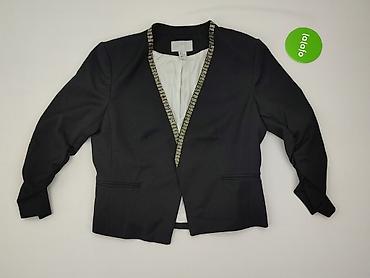 Elegancki żakiet idealny do stylizacji wieczorowych i smart casual – ozdobna lamówka pięknie podkreśla dekolt i nadaje całości efekt „biżuteryjny”. Lekko elastyczny materiał zapewnia wygodę, a podszewka poprawia układanie się na sylwetce. Dla kobiety. Używany, stan bardzo dobry.