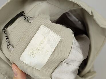Beżowy żakiet damski Moon Collection – rozmiar M - Krój: taliowany, jednorzędowy, zapinany na jeden guzik - Kołnierz z delikatnym wyłogiem, miękko układający się przy szyi - Długie rękawy - Dwie p...