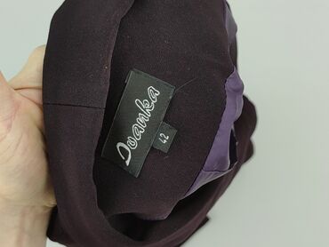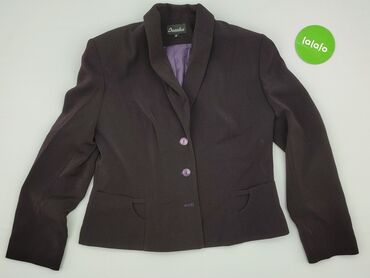 Żakiet damski Bożenka, rozmiar 38 - Fason: lekko taliowany, z głębokim dekoltem w kształcie litery V - Zapięcie: jeden dekoracyjny guzik z przodu (bordowy) - Kolor: ciemna śliwka/burgund z czarnym...
