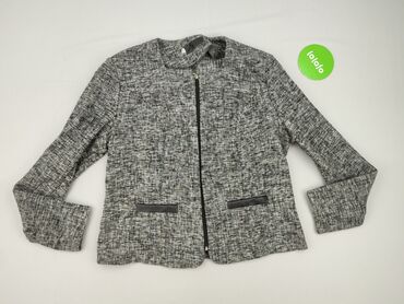 Marynarka damska Charles Vögele - Rozmiar z metki: EU 38 (F/I/B 40) - Kolor: melanż szaro-biały z czarnymi lamówkami - Fason: lekko taliowany, bez kołnierza - Zapięcie: suwak z przodu - Kieszenie:...