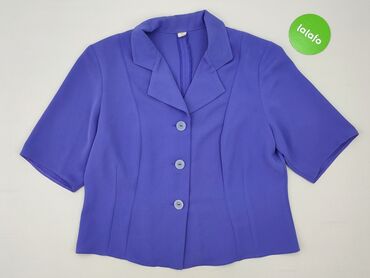 Fioletowa marynarka damska z krótkim rękawem, zapinana na guziki. Posiada klapy, co nadaje jej klasyczny wygląd. Idealna do stylizacji zarówno codziennych, jak i bardziej formalnych. Wykonana z mie...