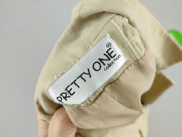 Beżowa marynarka damska Outfit - Marka: Outfit - Rozmiar z metki: 42 - Krój: krótka, taliowana, z szerokimi klapami - Zapięcie: 2 guziki z przodu - Kieszenie: dwie naszywane kieszenie z przodu - R...