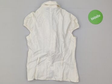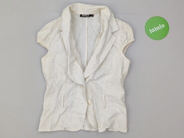 Biała damska marynarka bez zapięcia - Krój: krótka, dopasowana, z modelującymi przeszyciami; lekko zaokrąglone poły, długa rękaw. - Rozmiar z metki: 40 (EU). - Kolor: śmietankowa biel. - Detale: d...
