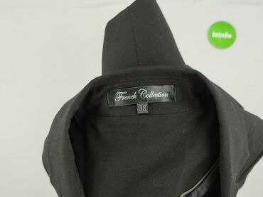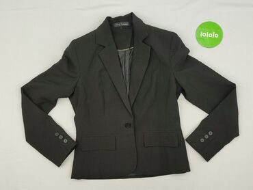 Damska marynarka czarna, rozmiar 38 - Fason: taliowana, jednorzędowa na 2 guziki - Kołnierz: klasyczne, szerokie klapy - Rękawy: długie - Kieszenie: dwie z przodu z patkami (dekoracyjne) - Tył: mo...