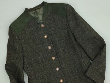 Marynarka damska w stylu myśliwskim/tyrolskim, oliwkowa. - Krój: prosta, lekko taliowana, z niską stójką (kołnierz typu stand-up) - Zapięcie: 3 ozdobne guziki z motywem myśliwskim + dwie krótkie z...